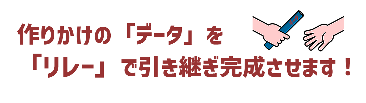 今お持ちのデータを使って、続きを引き受け完成させてお渡しするサービスです。